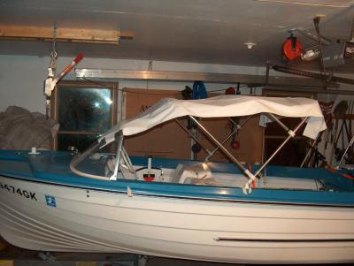 Cut and started sewing up the top. At this stage the front section and rear section are sewn together and a tube for the frame to pass through is incorporated into the seam over the front bow. My sewing skills leave a lot to be desired. Having a hard time making nice clean straight seams. They wander a bit, but I don't think it will really show.... I hope.