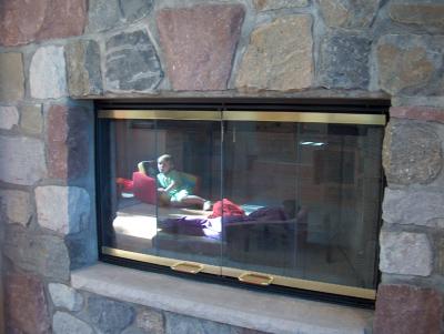 The mason suggested some sort of finished surface below the glass doors. So I asked if he could cut a piece out of the original limestone hearth we removed. He did, and it looks great and will be easy to clean. I also like the "keystone" he cut and placed center above the doors.