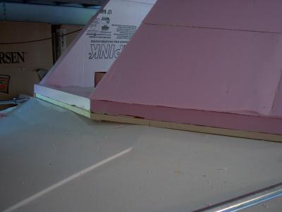 A good view of the leading edge of the windshield. One more windshield panel to make, then the whole top can be glued together and removed as one piece to cut windows and start sanding and shaping.