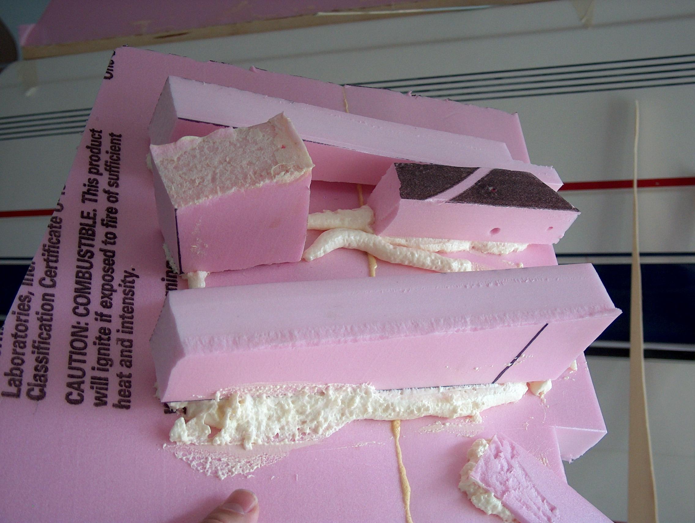 Opened a can of Great Stuff home expanding foam sealer. It did glue the styrofoam together, but stayed soft and not as strong as the Gorilla glue. So I won't be using this to fill gaps on the top.
