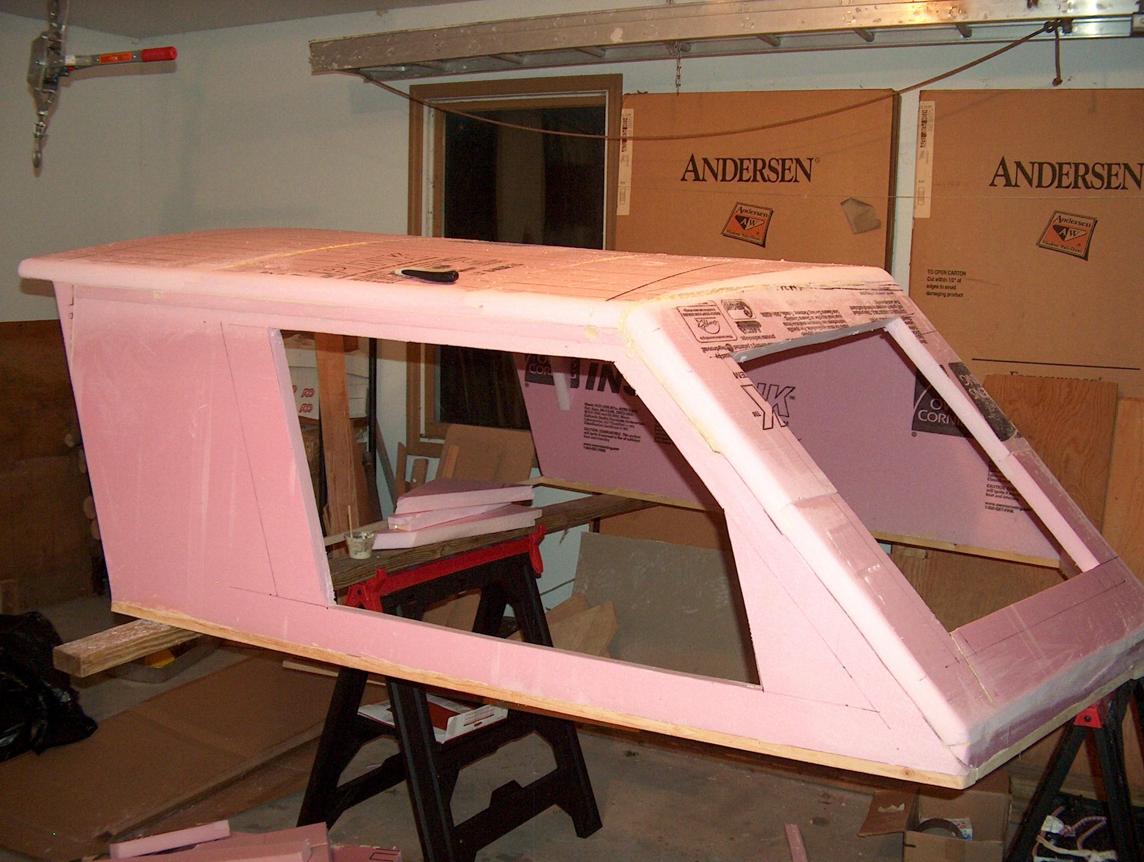 The side windows I made a little shorter in length than originally planned. I also cut off the sharp leading edge, because it wasn't really of any practical use, although it looked nice. Cutting it short makes the opening larger quicker when sliding the window to the rear. Plus there is more support under the windshield outer edge.
