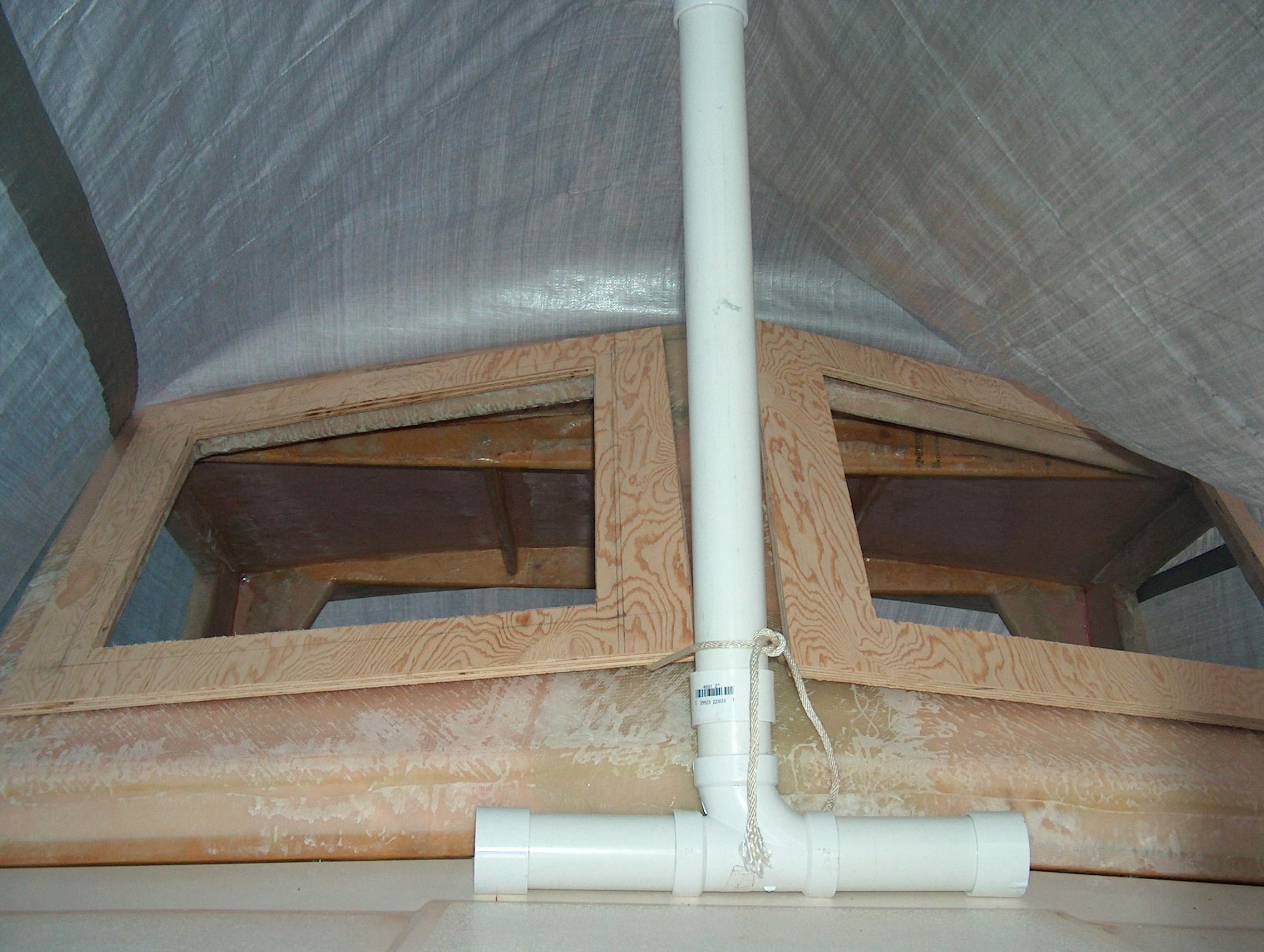 Checking the fit from inside and out. The boat is still under a cover with the PVC pipe making a tent to keep the snow off. But I'm still able to get under and work.