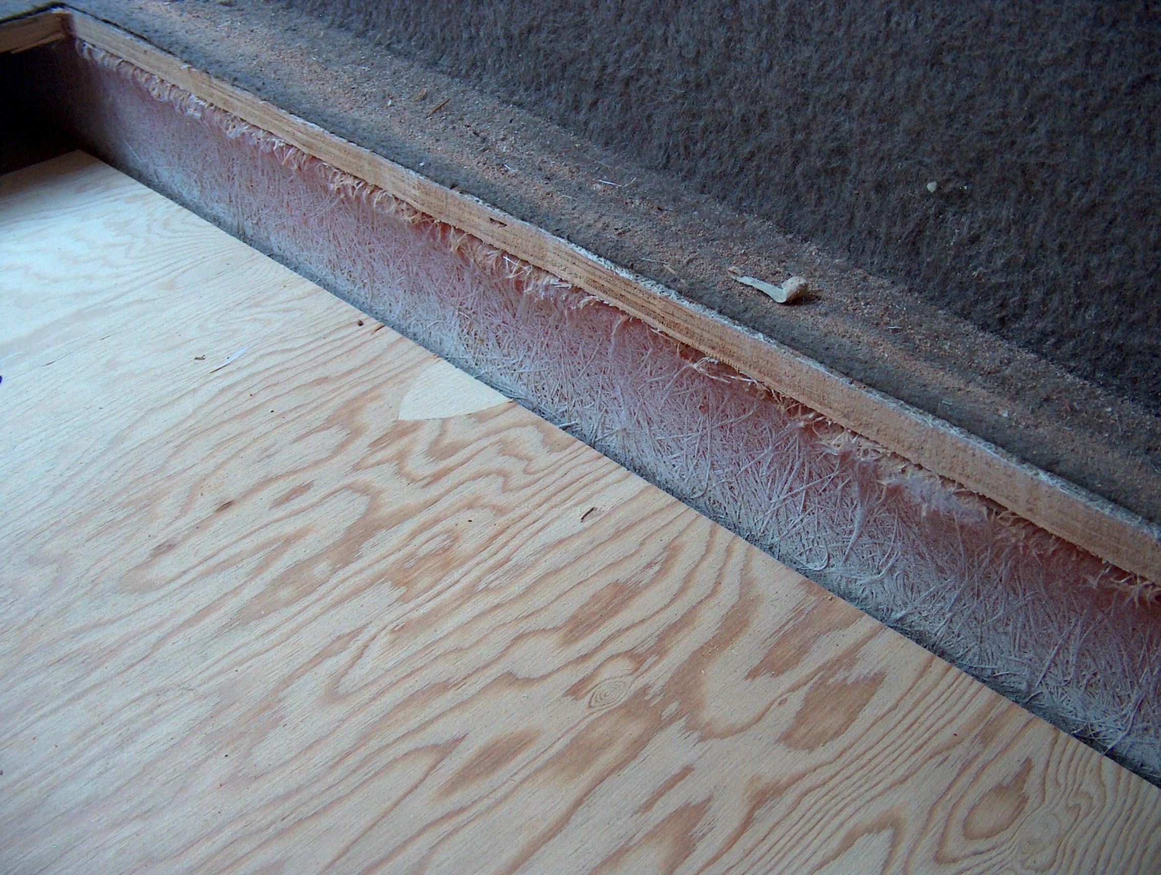 Here is the Starboard stringer. The plywood decking above will be sanded smooth flush with the stringer. Then the Deco Dot vinyl flooring will wrap over the edge and extend down below the recessed deck.