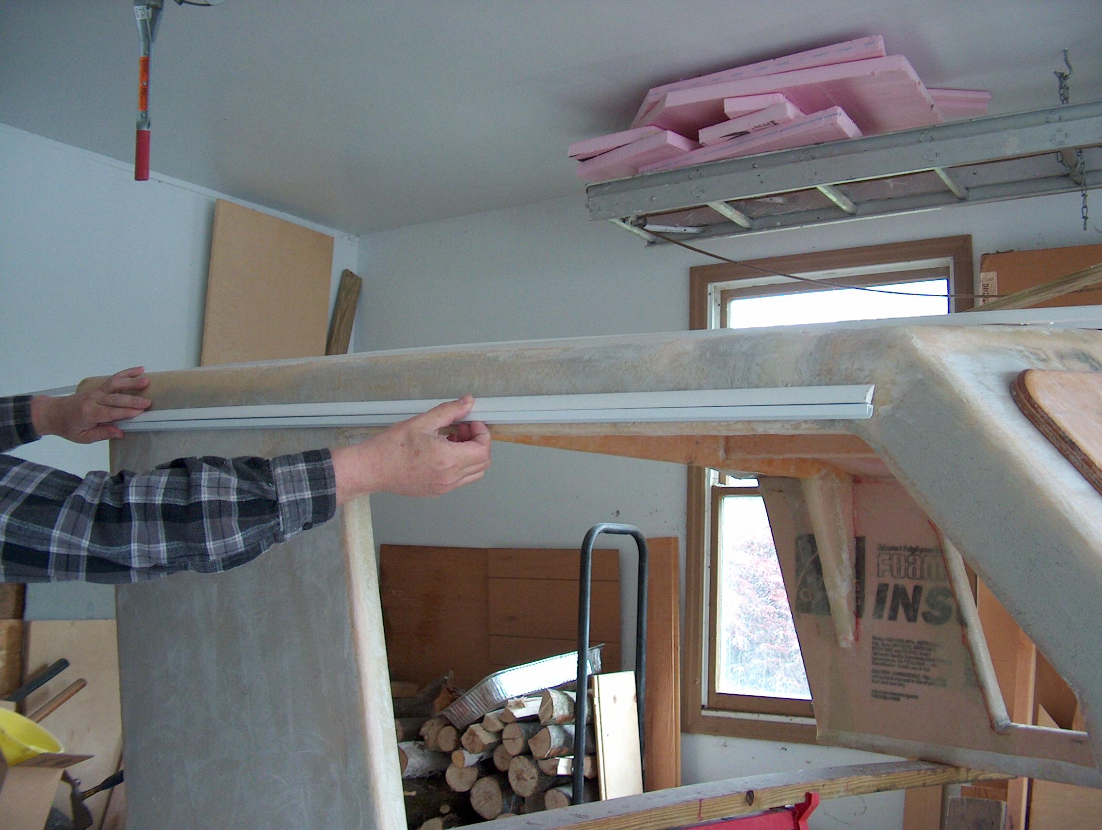 The quarter round and the track will frame the window openings top, front and bottom. The window will be able to slide all the way out the back, so a rubber stopper will be needed to keep it from being lost when bouncing around on waves.