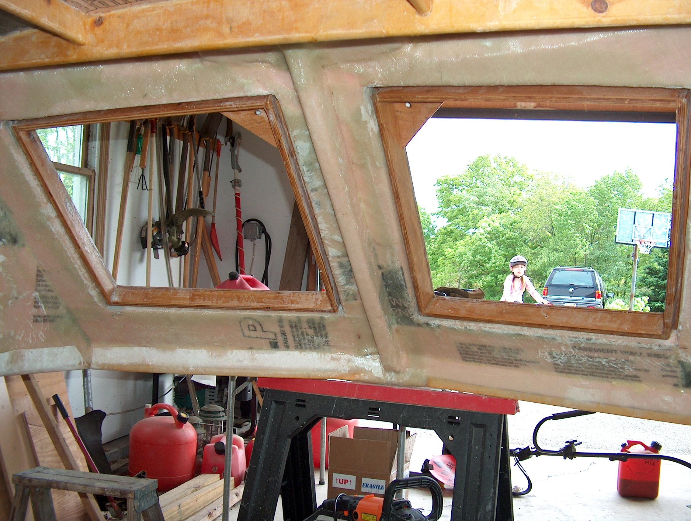 Window frames come nearly flush to the inside of the top. Simple twist latches will hold them closed.