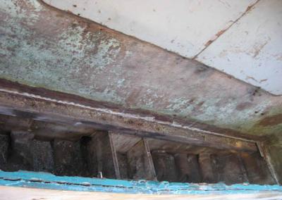 This was fairly simple to chisel out without making a huge mess. Note the crack (delam) in the transom.