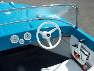 I wanted a classic 3 spoke wheel in white. The original MFG wheels were a 3 spoke wheel about 18" diameter in black and chrome. They would have covered part of the guages I put in and designed to work with a 13" wheel. Plus they are hard to find in nice condition.