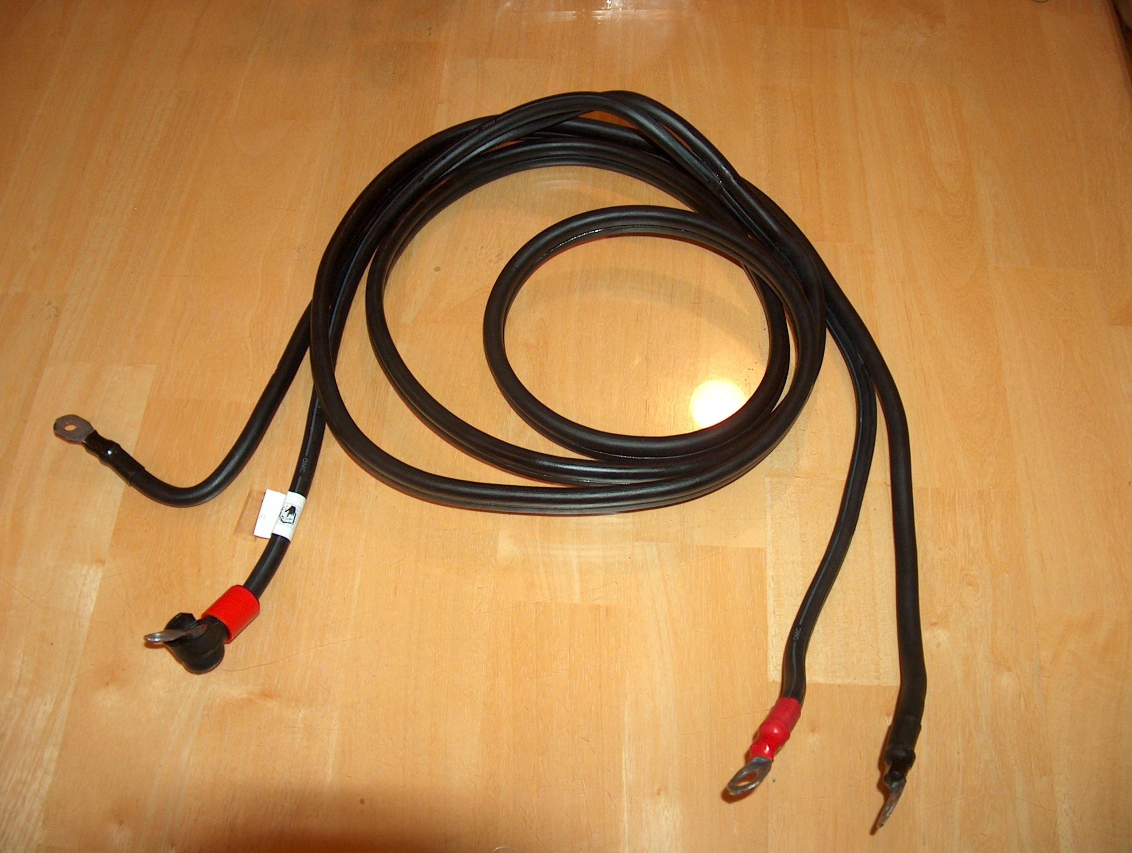 A battery cable came with the used wire harness. Its a 10 foot long OMC cable for use with the 90 hp motor. The cable was covered with grease and dirt. It was washed with hot water and lots of dish detergent, then dried and inspected for cuts or damage to the insulation. I could not find any cuts or punctures in the insulation so it got a wipe down with Armor All to protect it from UV rays and salt exposure. Its now ready to install along with the outboard motor.