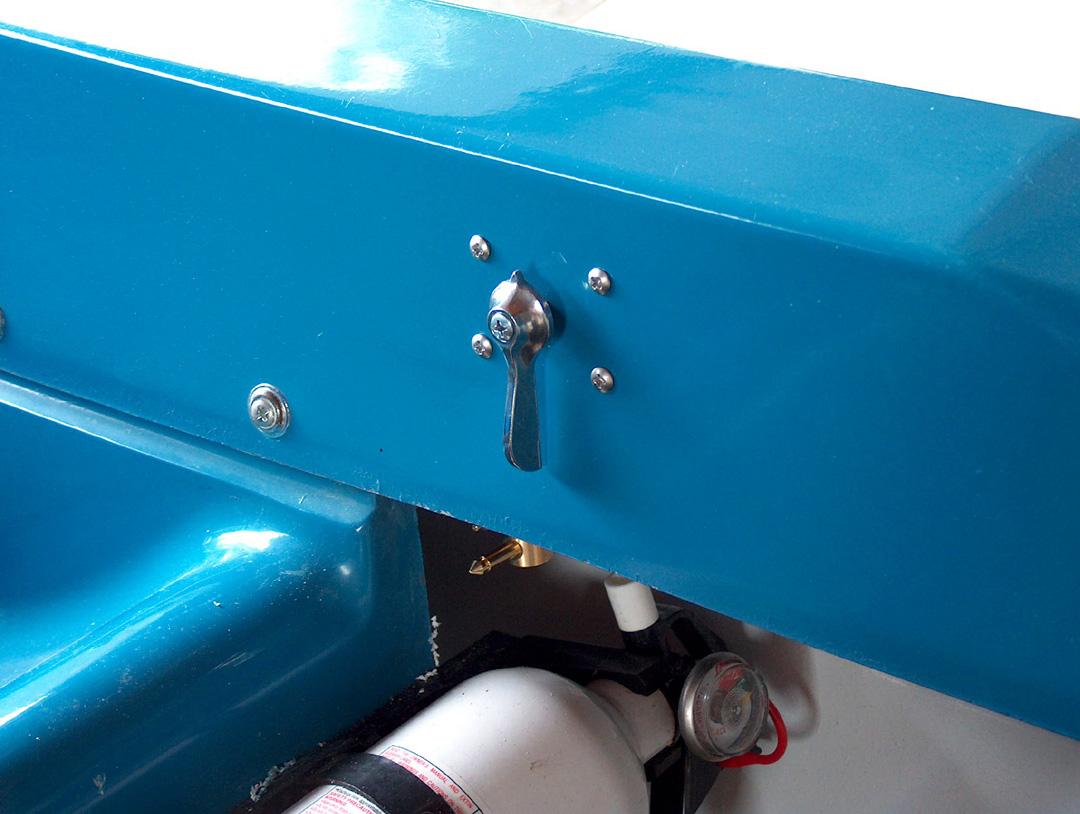 The Fuel Line Switch was installed in the Port Gunnel just in front of the splashwell. The connector for an auxiliary tank is visible just below the gunnel.