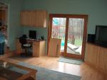 Update: 01/10/2011. Its been over 3 years since finishing the project. The Flooring is holding up very well. Barely shows a scratch, even on the bare steps. Been a few spills of drinks, even dog accidents. But they were cleaned up quickly, so there is no stain or damage. Good floor. The cabinets still look and work great. No cracking or finish failures. Wish I had put in some outlets above the computer desk top, and more outlets behind the TV cabinet. Now we have a 48" large screen TV on the cabinet, and it works great. Could easily fit a 52" set, plus lots of room behind the TV for sub woofer, etc. The baseboard heat works great and it's nice to not worry about freezing pipes any more. This whole project was money well spent. It pays to buy quality products!