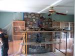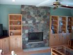 We also added book cases, hardwood floor and replaced the aging fire box with a new heavy duty unit that will last the life of the house. Then a new fireplace face was built from 2 tons of split field stone, and the hearth is slate and set level with the finished floor.