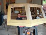 This custom hard top is a fiberglass foam composite using epoxy resin and biaxial fabrics that makes a very strong and light top for this boat.