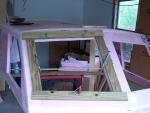 This custom hard top is a fiberglass foam composite using epoxy resin and biaxial fabrics that makes a very strong and light top for this boat.