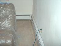Took the baseboard heat registers off two of the three walls, and re-used it to make an L shaped heat register rather than the U shape it was. The whole time this work is going on, the furniture is covered in plastic and the TV and PC are still connected! This went on for about 3 months! Talk about making things harder on yourself....