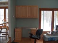 These are the wall cabinets for the Computer Desk. Two 27" wide cabinets were joined together then screwed to the wall as a single unit. A 1-1/2 inch wide maple spacer was added to the left hand side to match a spacer needed on the desk base cabinets to clear the baseboard heat return pipe.