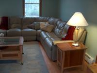 Needed new lighting for the end tables. Found these oak and polished nickel lamps on the web. They are made by Pacific Coast Lighting. A nice contemporary design that goes with the rest of the furniture. Also note the glass tops on the end tables. Local glass shop charged $35 each to cut and sand 1/4" plate glass to match the templates we made by tracing the top on heavy brown paper. Good upgrade to save the table tops from damage by kids.