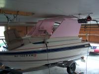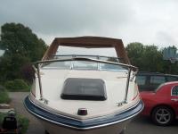 This is the boat as originally outfitted by Bayliner. I really like it and we used it this summer to get a feel for if I should make a hard top or not. I realized a hard top with steeper incline windshield and higher top will give more usable space inside and more protection from the elements than the factory Navy Top.