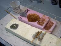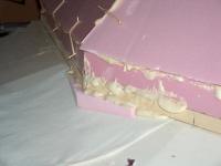 There was a small gap in the front of the top. Cut a piece of foam and glued it in. It will be cut flush with the wood base.