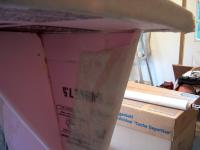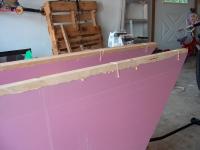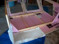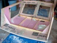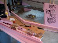 After cutting up some 1/4" plywood and having problems, I decided to use Styrofoam and epoxy. Had to glue up two pieces to get the size needed to cut the side walls out of. Using special Styrofoam construction adhesive available at the home centers. Stuff takes forever to dry. Put some weight on the seam while it cures, and to keep it from blowing away.