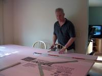 It was a hot day, so I brought the glued up panel into the house to measure, mark and cut it. My wife is the best! She doesn't complain about me doing this stuff as long as I clean up when I'm done.
