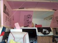 Removed the windshield and side glass. It came off easy with about a dozen or so screws. I put two layers of cardboard in the cuddy and stored the windshield there for safe keeping. Then took more measurements, this time more exact and updated my sketches.