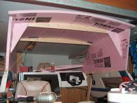 The port and starboard boards have the T-nuts epoxied in so that they can't come loose later on. The same treatment is given to the wood supports under the windshield. A total of 10 bolts will hold the top on the boat.