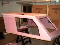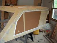The roof is resting in place. I realized that the bow in the roof gave 3" extra headroom. The whole top was getting rather tall, so I cut 3" off the side panels. That returned the headroom back to what it was, and makes the top look lower and sleeker.
