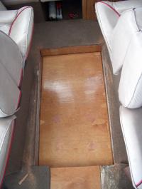 The roof supports can be seen here. The space between them is where clear headroom is needed for standing. There is about 5'9" of headroom. 6'3 if you include the possibility of lowering the floor to bilge level.