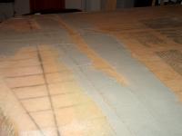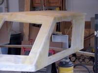 The Starboard side and the roof are coated in Marsons. This is what it looks like after the initial 80 grit sanding block.