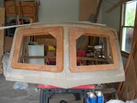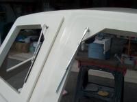 Been about two weeks since I was able to work on the top. Finally had some time to work on the boat today. Got the windshield panels glued in.
