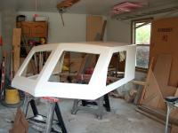 A good view of the leading edge of the windshield. One more windshield panel to make, then the whole top can be glued together and removed as one piece to cut windows and start sanding and shaping.