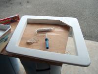 The support for the windshield glass was made from PVC board. Ripped 1/2" wide strips off of a 1x4 PVC board. Then routered the back side over so it looks nice from inside and no sharp corners. Attached with 3M 4200 and stainless screws