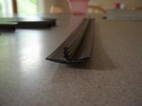 The windshield windows are going to be trimmed with the black vinyl T molding. It came in a roll and I cut the lengths needed then warmed with a hair dryer to straighten them out.