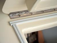 Stainless Steel Piano hinge was cut to size and mounted to check window frame clearance and hinge action.