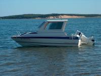 The space is nice. Lots of room to move around (for a 16 foot boat) and its nice to have the protection from the wind while under way. Side windows let in plenty of breeze while at speeds.