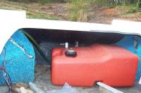 Another shot of the bad transom, and the previous owner's ingenuity :-) This was screwed into the transom to support the motor.