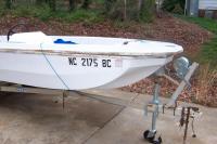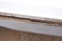 This is the starboard side lip, showing the inside ledge of the hull with the strip of plywood that goes around for the purpose of attaching the rub rail. I think I will need to replace this plywood, it isn't rotten but some of the filler is missing and I might as well.