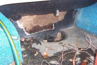 We removed A LOT of floor and foam today. Decided to cut all the way back to the bilge area, and I am VERY GLAD. There was 4 or 5 inches of water on either side, at the very back behind a rib that kept the water from being seen.
