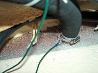 Had to cut out some of the foam in the top of the transom so the vent hose could be routed uphill over the fuel line. This makes it harder for water to get into the tank through the vent. Stainless vent is also bonded with the green wire.