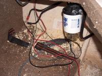 This photo shows how the fuel lines enter and exit the filter, then pass through the boot out to the splashwell and outboard.