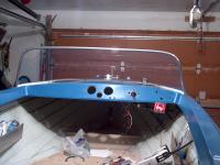 The new windshield is then fit into the old frame. Be sure to line up the alignment marks on the frame with the windshield made in Steps 3 & 4, or the corners will not fit well, and the windshield may be off center in the frame. Fitting the windshield into the frame is made easier if done by working on the floor. The Polycarbonate is thin and very flexible, so don’t worry about it breaking or cracking while bending it into the curves of the windshield. It will need to be force fit into the frame, but will stay in place if not man handled too much. Test fit the assembly onto the boat. The leading edge of the front side will have to be pressed down to the deck to secure with nuts/bolts to the original fasteners. Re-use the original rubber seal if not damaged, or buy a new one. After you are satisfied the windshield is in the frame correctly, drill about 7 to 9 holes around the inside of the frame that pass through the windshield. Secure the windshield in place with stainless steel sheet metal screws through these holes. Be careful to not drill through the frame to the front side where the holes will be visible. Use short screws, about ½ inch.