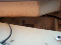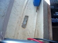 The Force outboard used C clamps to hold the motor to the top of the transom. Tightening and re-tightening these clamps over the years started to cut through the fiberglass splash well. The cut is not all the way through, so the groove is filled with thickened epoxy.