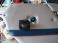 The bolt holes marked and drilled, and then the motor is bolted on using stainless hardware and lots of sealant for the bolts.