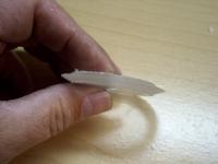 The holes are cut using the Circle Cutter about half way through, then the polycarbonate is flipped over and cutting continues from the other side. This method leaves a nice clean hole. The plug that comes out has tapered sides and is rather sharp.