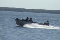 Another shot from video shows how flat its riding while cruising about 15 - 20 mph. Moving the fuel weight from the rear and adding it to the front made a dramatic improvement in the handling of the boat. As long as there is between a 1/4 and full tank, the porposing that occurred at full throttle is gone. It rides very nice. The extra weight in the bow helps it cut through chop and wake better than it did with the gas tanks in the rear. I am very pleased with the results of this project.