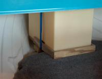 Added "sidewalls" to the platform to keep the tank from sliding around. Then tank strap was installed and snugged up tight. Carpet was cut and fit back around the tank. Nice, neat and secure.