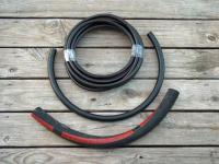 Coast Guard regulations specify that marine grade hoses must be used on a boat. They have a fire resistant cover as an exta safety measure that auto hoses don't have. These hoses meet the regs, and are identifiable by the red stripe on the side. Big hose is 1.5" ID for the fill, the other are 5/8" for vent and 5/16" for the fuel line.