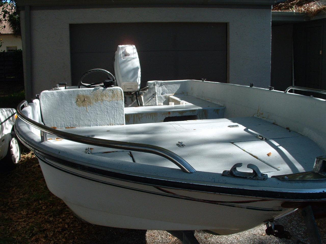 Front view of interior. It looks better than it really is. The prior owner used epoxy and plywood to cover up rot and then coated it with gelcoat. The gelcoat is not sticking and is falling off. That's ok because it will all have to come out anyway.