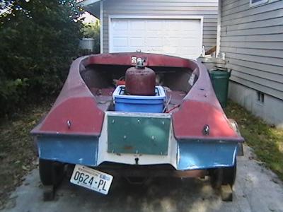 Rear View - Transom was rotten, and I cut the old plywood out last year before it sat this summer. Now filled with leaves and gunk, and inhabited by spiders and wasps, I'll have to re-clean the inside.