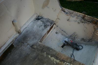Working my way all the way around with a grinder, I am going to lift the entire main section of floor. It is time to give serious thought to how to prevent these problems in future since I have to fix it now.